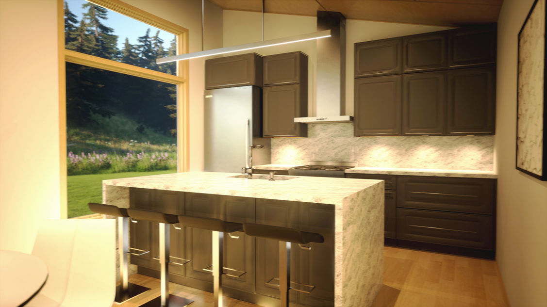 The Askel places living and resting on either side of the main entry. With a 1,184 square foot floor plan, 2 bedrooms and 1 bathroom, the open-concept kitchen and living area focuses out large glass wall. Natural flow from indoor to outdoor spaces from the living room and dining room onto the covered deck. This plan also easily allows for a full or walk out basement.